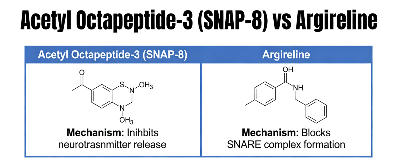 It is often described as a topical “Botox-like” peptide because it targets the neurotransmitter release process that triggers muscle contraction. Unlike Botulinum toxin, it does not require injections.